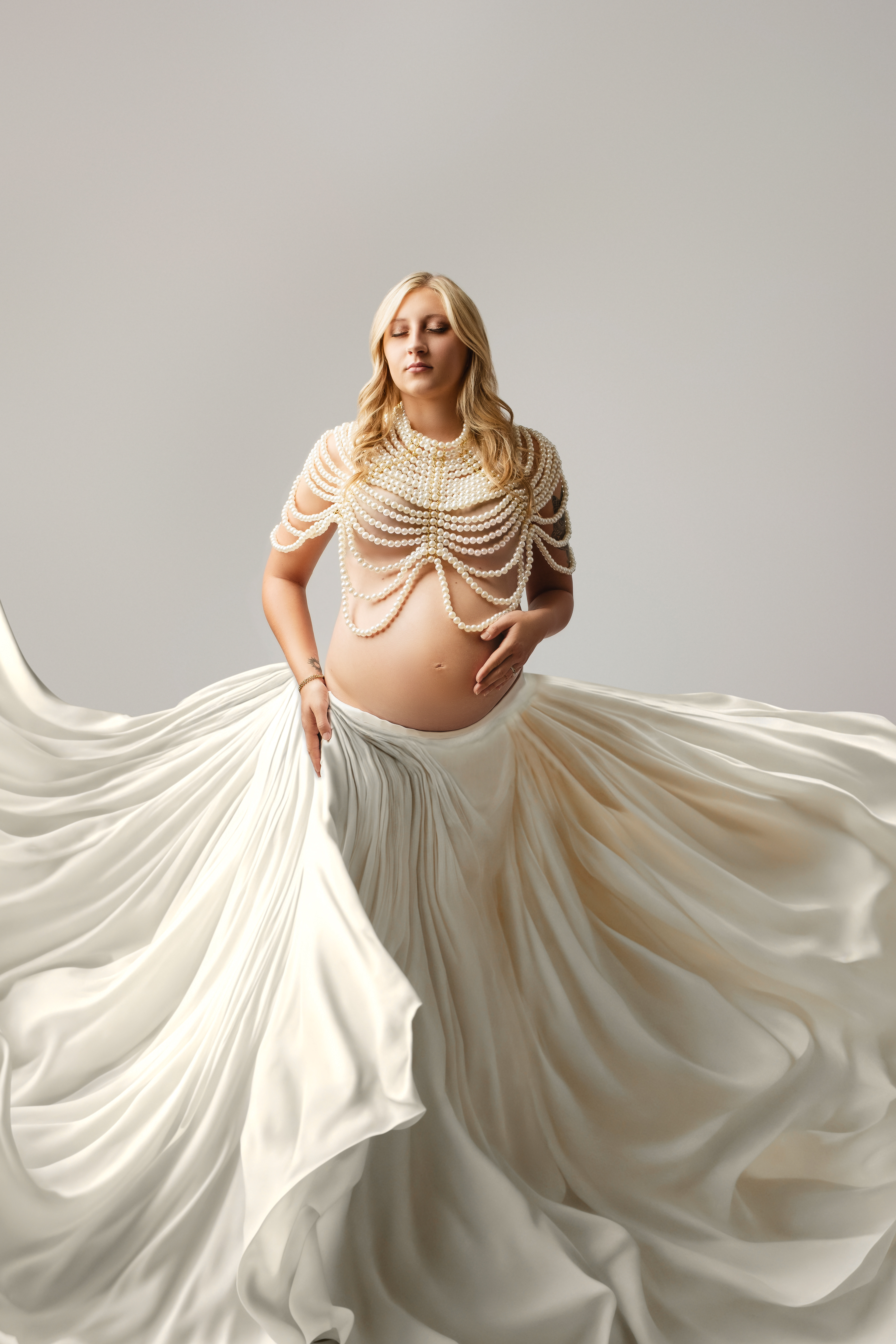I will send you a session prep guide before your session. The prep guide highlights the little things to think about to get ready for your session and notes some things to bring that help me with styling and editing (nude color undies are a must). Other than things that are sized perfectly for you like a nude bra, I have dresses and fabrics to choose from that will make up your entire look! Every momma will be and feel gorgeous no matter what, even if you are shy.